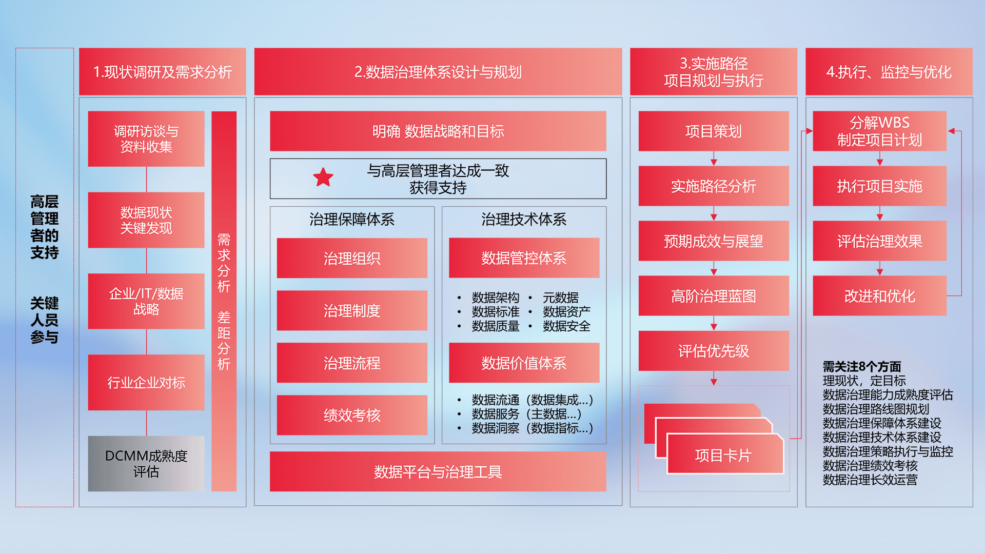 制定并执行统一的数据标准,,,,规范数据定义和格式,,,消除冗余和不一致性,,,,实现跨部门和跨系统的数据一致性,,,,为企业提供标准化的数据基础。。。。